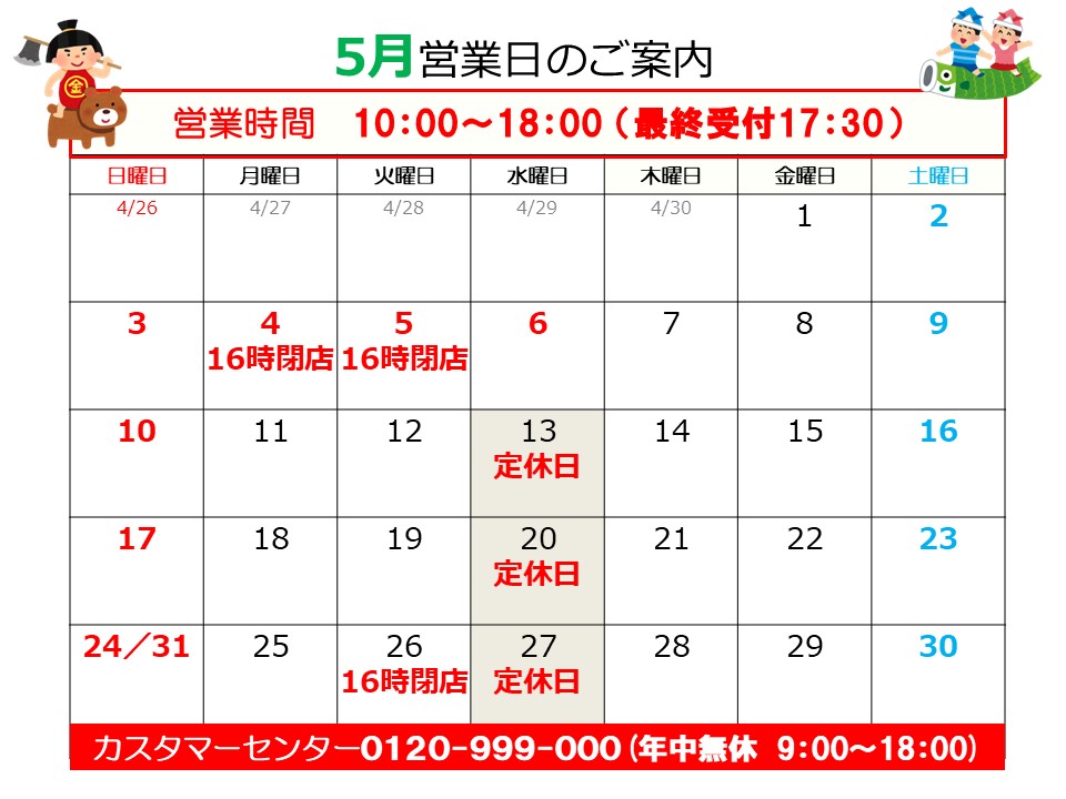 5月4日(月)・5日(火)・26日(火)
