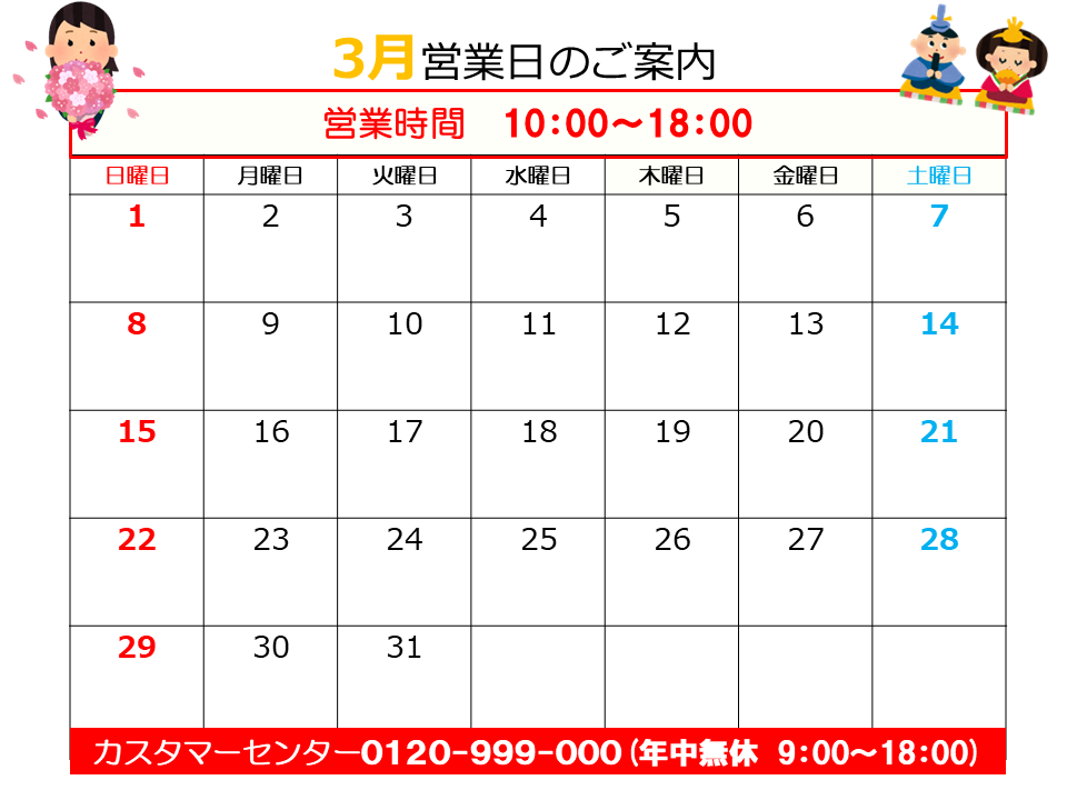 | 定休日 | 水曜日(3月のみ無休) 祝日の場合は営業 |