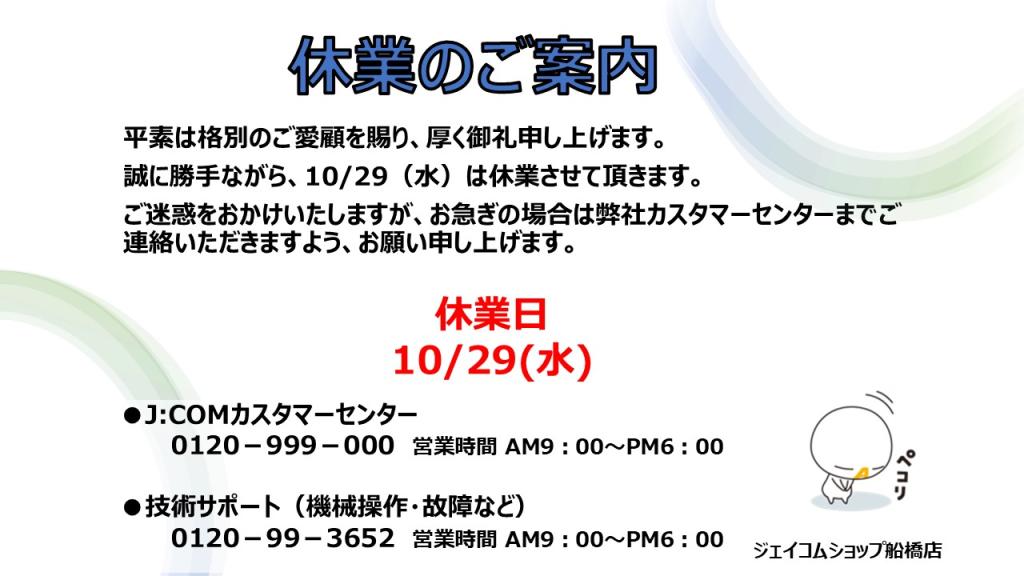 | 定休日 | 火曜 10/29(水)臨時休業 |