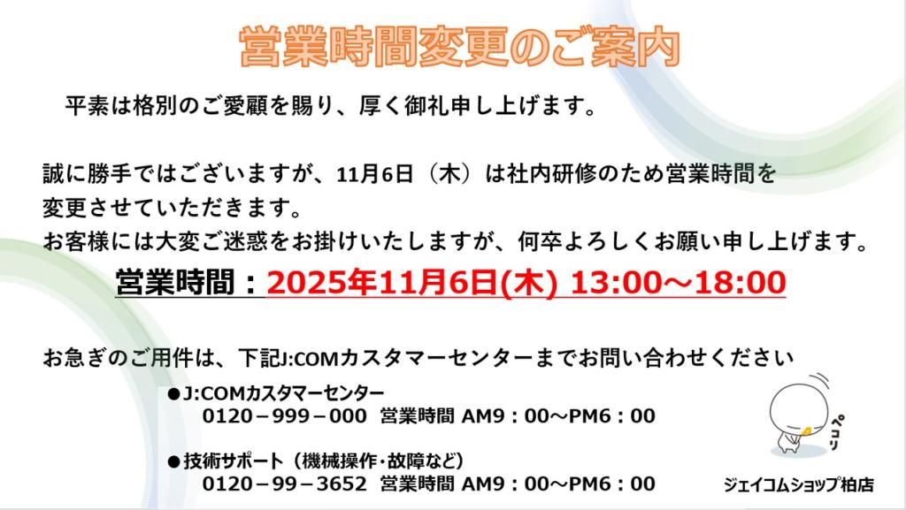 ジェイコムショップ柏店では、WEBからの来店予約を受付開始しました!
