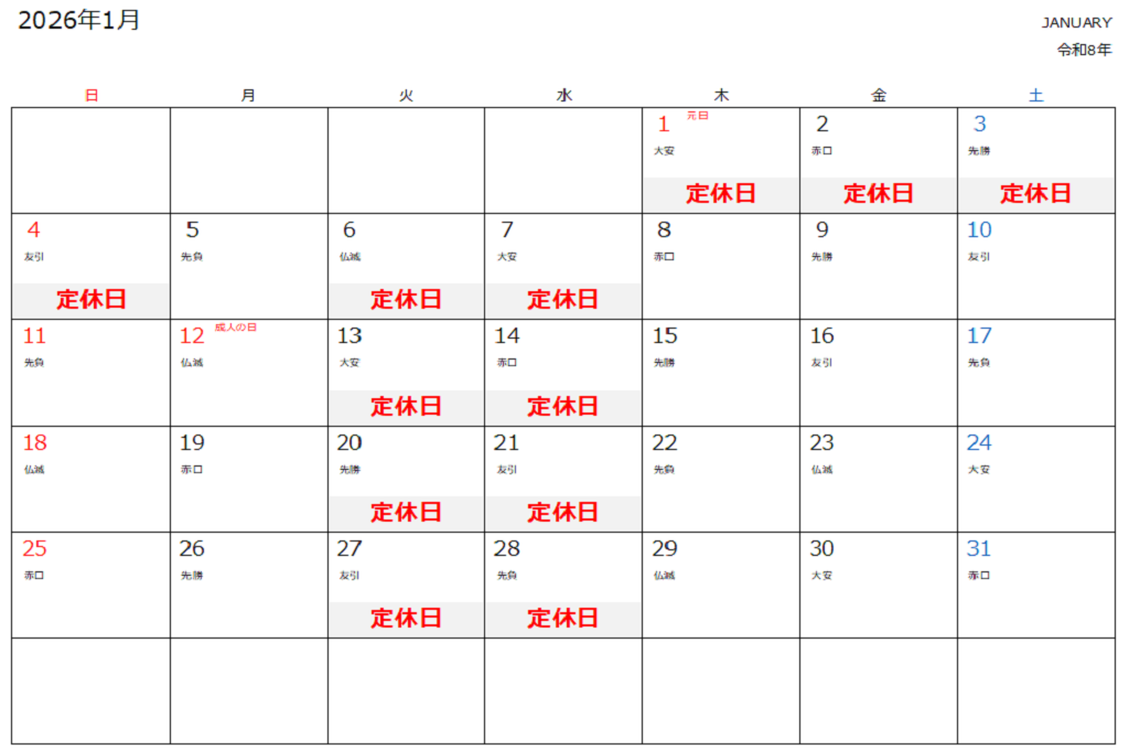 12/29 (月) ~ 01/04 (日) 年末年始休業