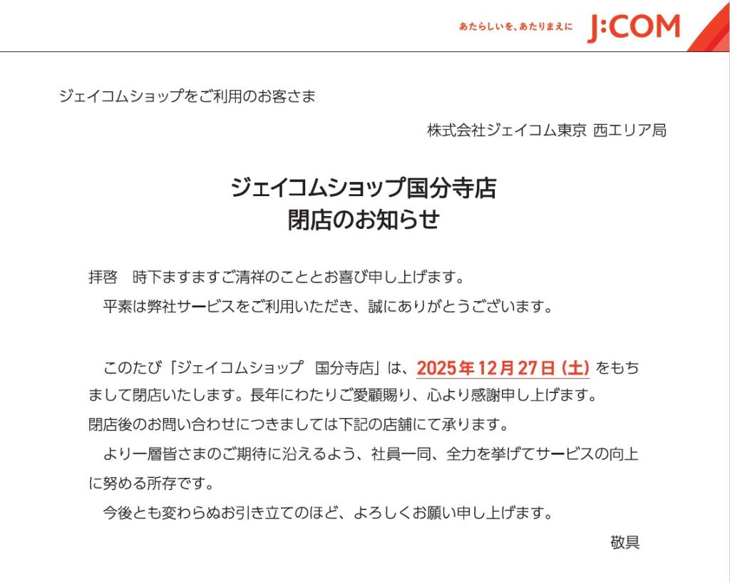 | 営業時間 | 10:00~17:30(水曜定休) 変則営業日 12/27(土)16:00閉店 ※国分寺店は2025/12/27(土)で完全閉店致します。 |
