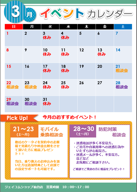 仙台店からのお知らせ